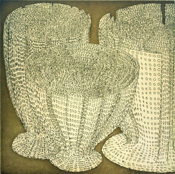Aquatint with spit bite and soap ground aquatints and flat bite etching.