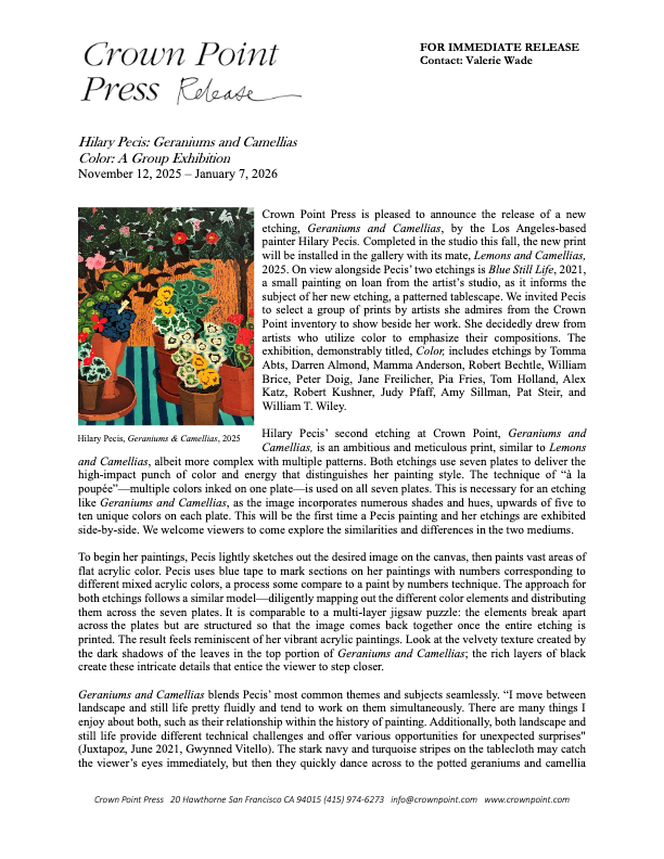 Stay up-to-date on Crown Point Press new print releases, exhibitions, news, and events.