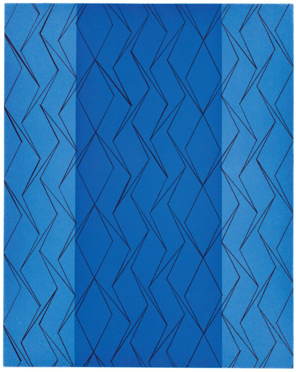Hard ground etching printed in black and blue.
