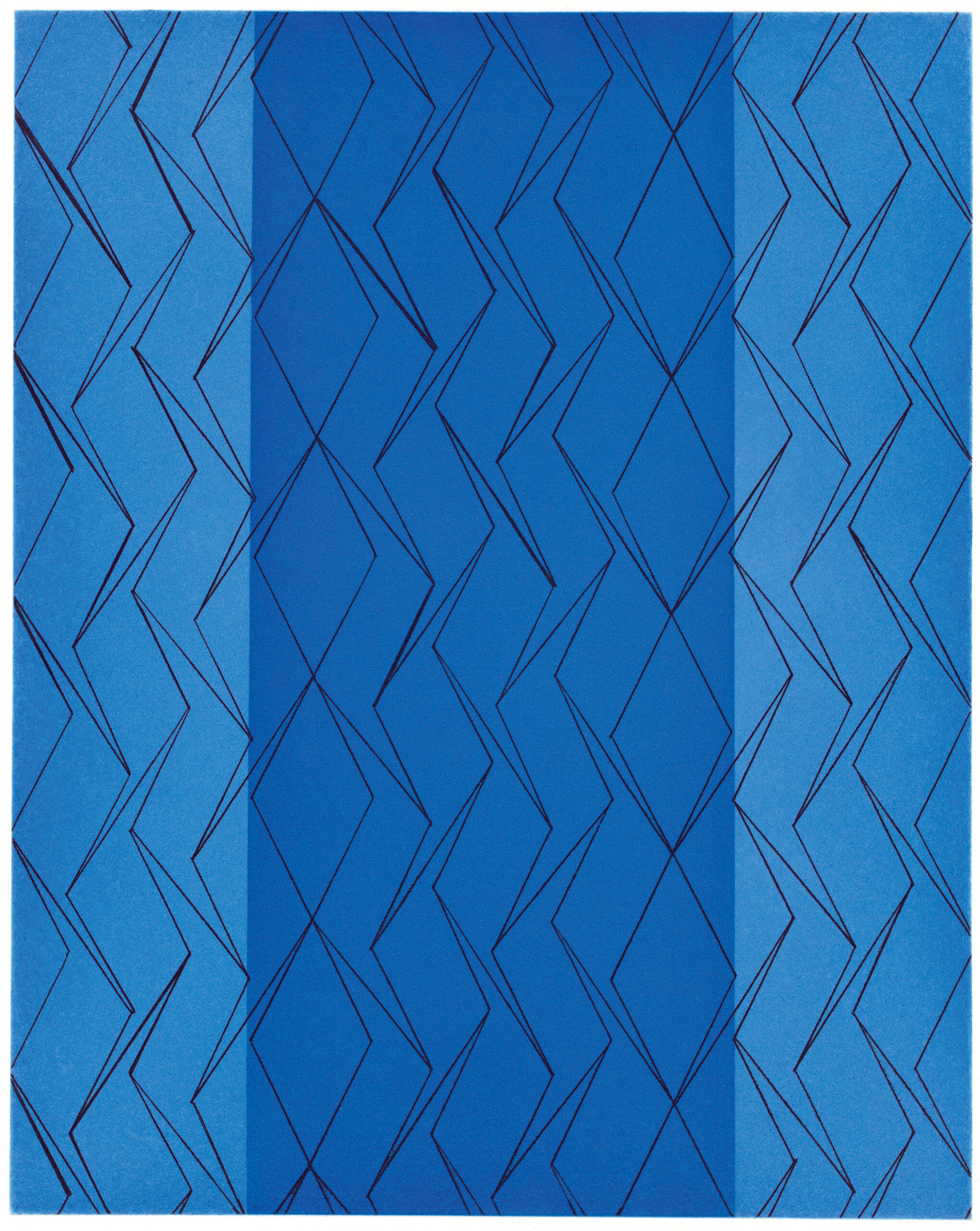 Hard ground etching with aquatint printed in black and blue.