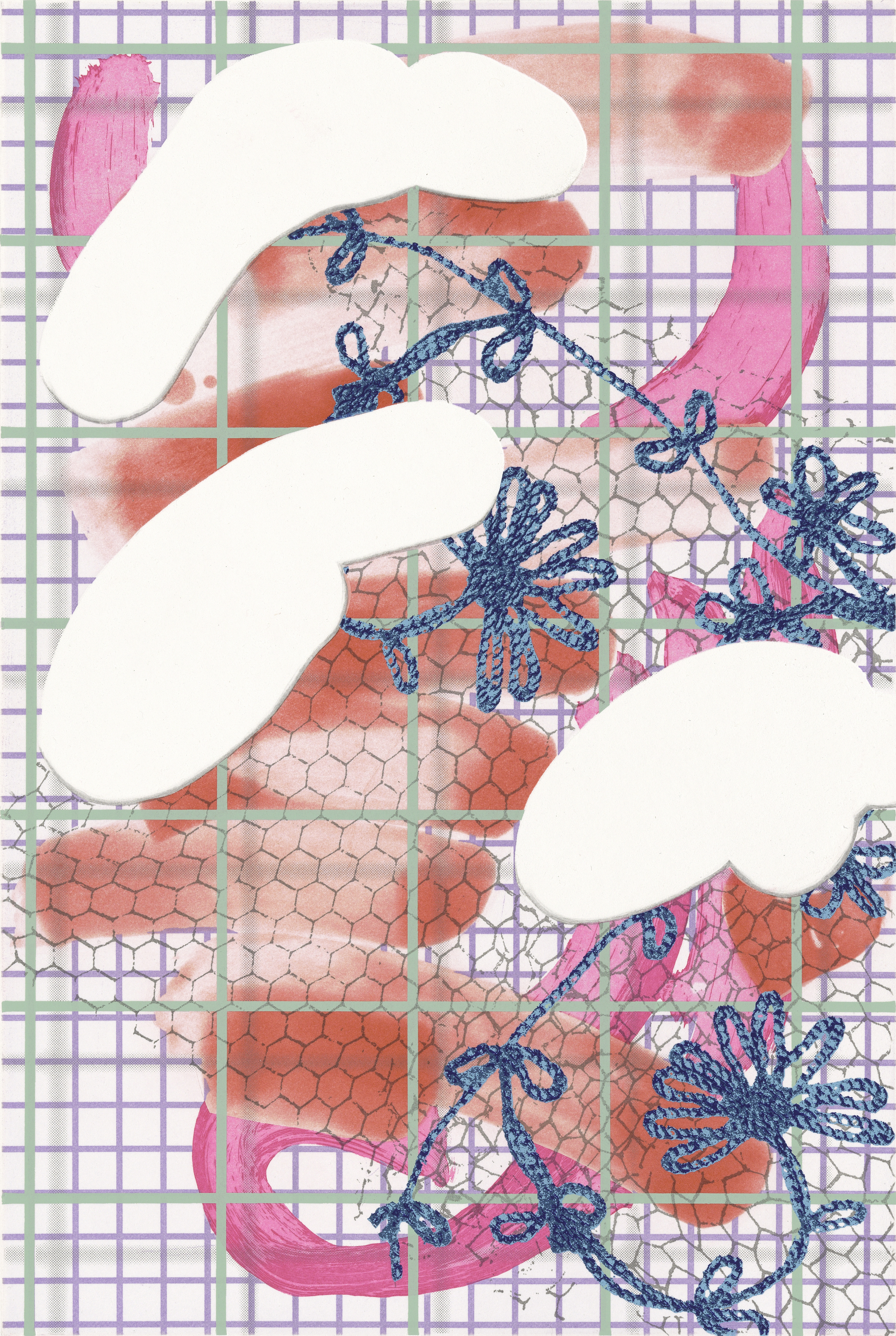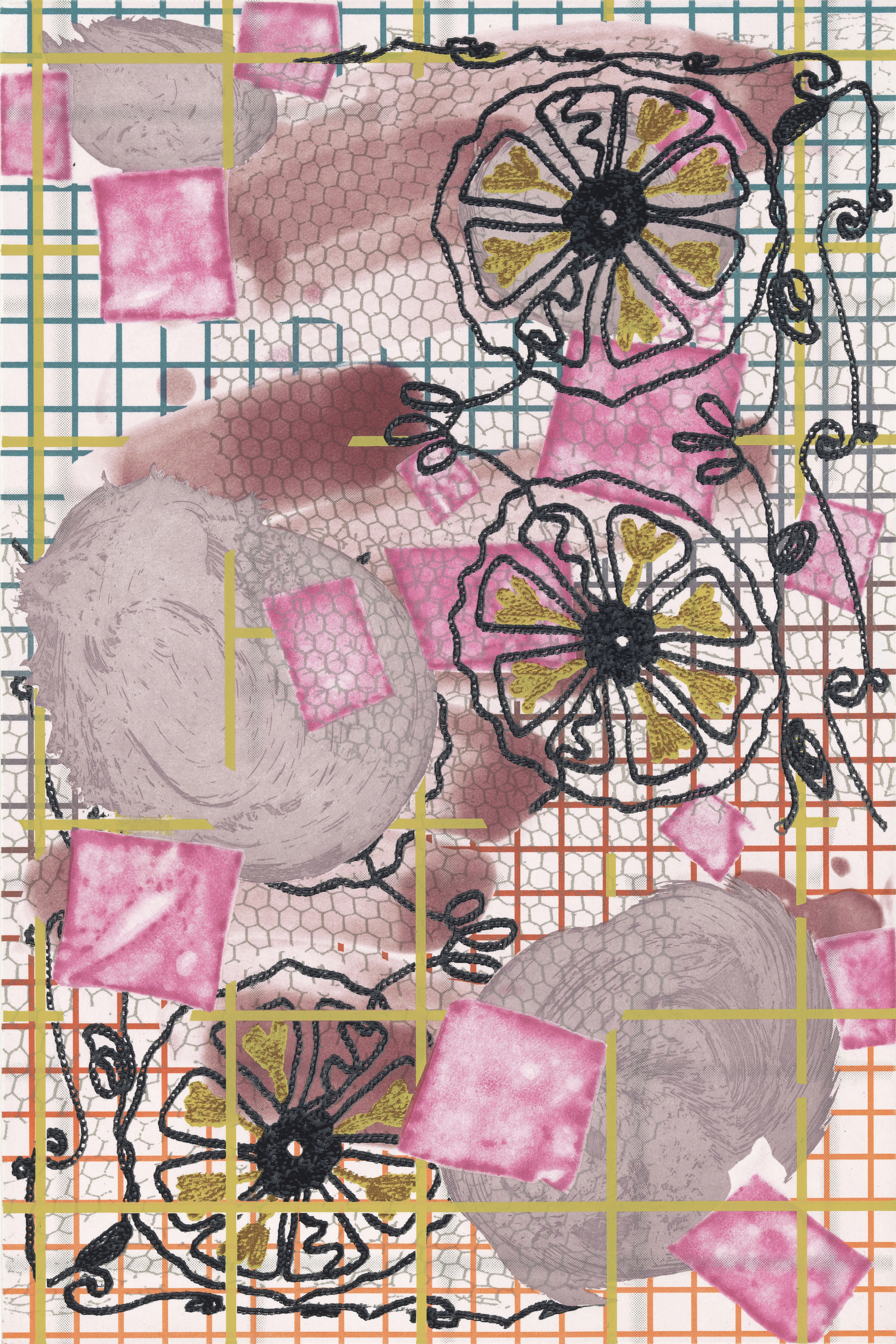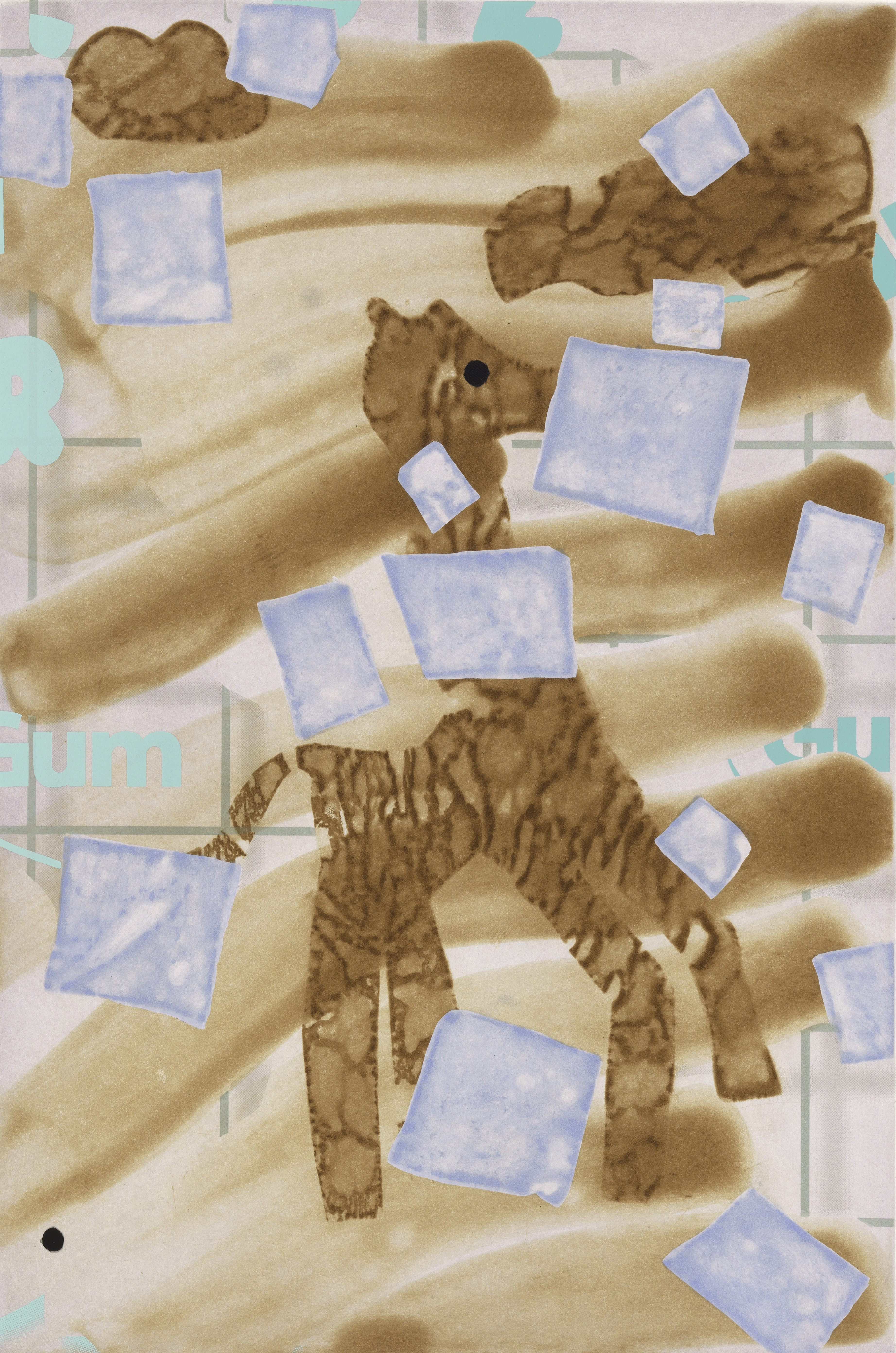 Color aquatint with flat bite toner transfer.