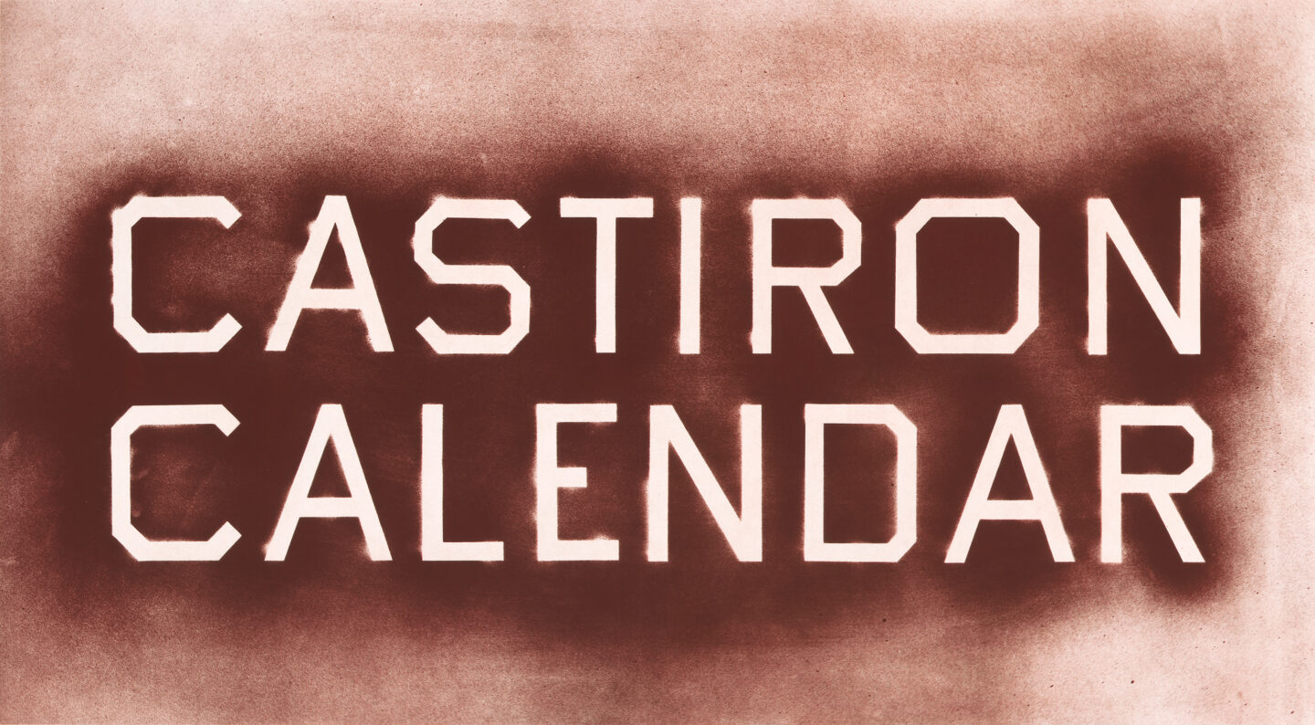 Flat bite etching printed in red.
