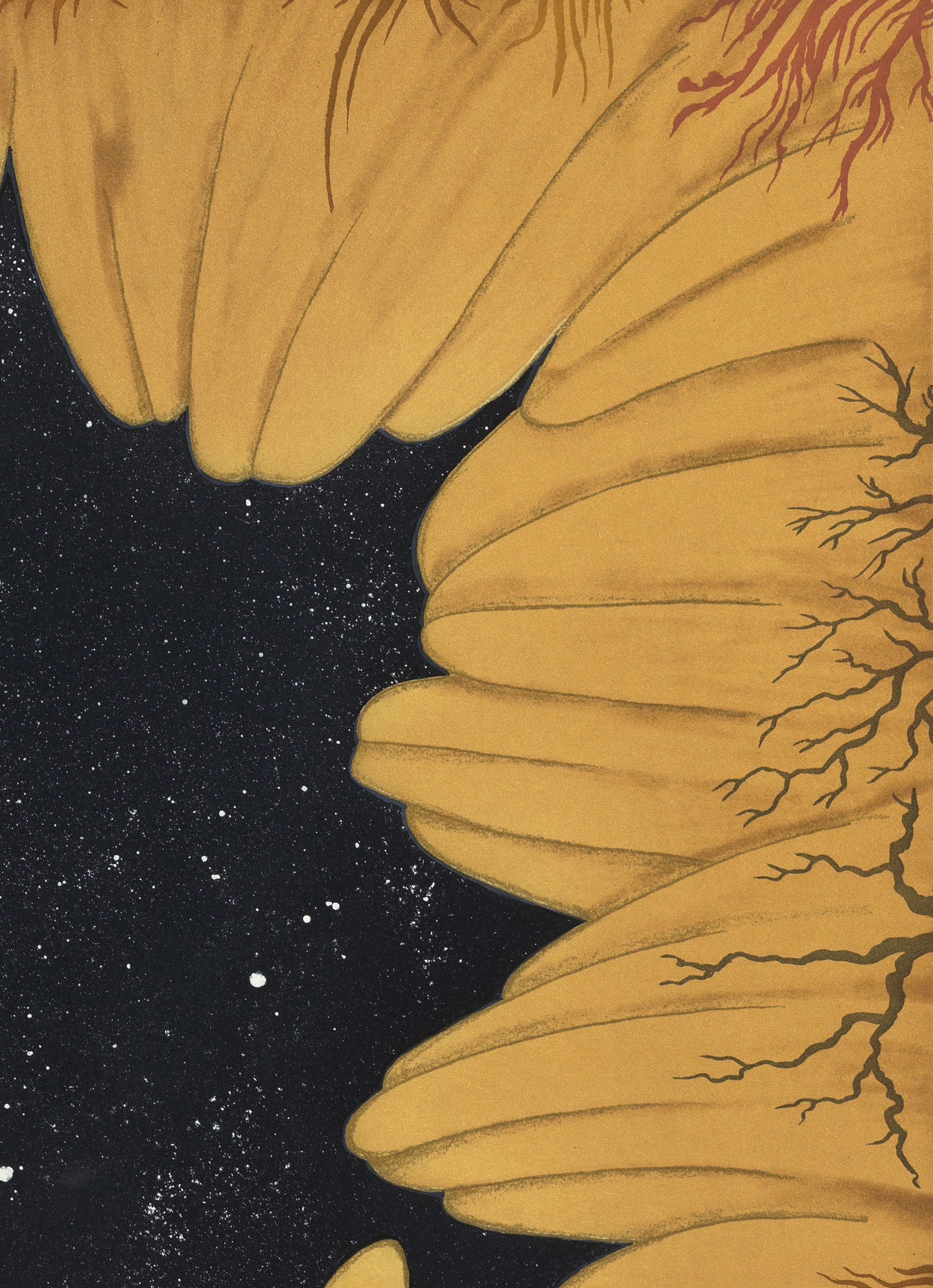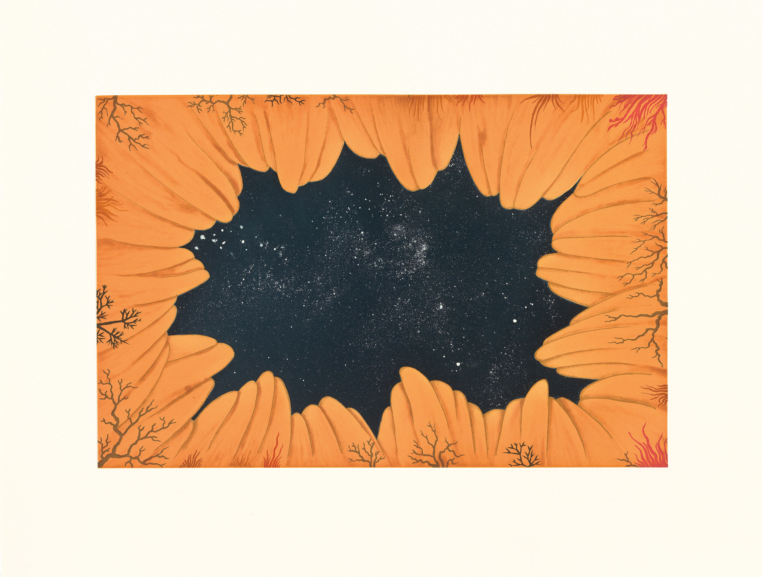 Color sugar lift aquatint with spit bite aquatint and aquatint on gampi paper chine collé.